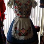 Ma Vajda Ingridéknél voltam, Rebekával segítettünk neki felöltöztetni a szabóbabákat, amiket majd kiállítunk a bálterem bejáratánál, vagy valahol, mert az elbeszélések szerint kicsi ott a hely… Első sokkhatás a ruhák mennyiségében ért utol. Van egy külön kis fészer, ami tele van a különböző jelmezekkel. Sajnos ezekre a nagy gonddal megvarrt ruhákra nem tudok mást mondani, mert a viselethez közük nincs. Vagy hát van, hasonlítanak, meg én abszolút értékelem, hogy mennyi munkával, s főleg a ’70-es években milyen körülmények között készítették őket, de amikor megláttam, illetve megfogtam egy összeállítást, és rájöttem, hogy nem egymásra van téve a vállfán a bőing meg a mellény, hanem imitálva van az egész (értsd, van egy bőujjas kiképzés egy fehér anyagból, összevarrva egy fekete, mellény formájú anyaggal, aminek a nyakhoz közeli részére is van varrva ugyanebből a fehér anyagból egy 2-3 cm, vége visszavarrva, belehúzva egy madzag kötőnek), kicsit elborzadtam. Aztán az egyik ámulatból a másikba estem, amikor láttam, hogy ugyanez az elegy össze van varrva a felső szoknya imitációjával… És ugyanígy működik kb az összes öltözetük. A kalotaszegit leszámítva. Szóval egyberuhaként veszik fel, többnyire elöl zipzárral… Mert hogy úgy gyorsabb levenni, mert amikor a színpad mögött öltözni kell… Hát nem tudom. Nálunk ilyenkor inkább tovább játszik még a zenekar, vagy tovább beszél a konferansz. Nem nagyon akartam kötözködni, mert ha az a céljuk, hogy a tánccsoport viseleteit mutassák be, akkor oké, de ha egy kicsit is hitelesek akarunk lenni, akkor nem szabadna a kalocsait úgy kitenni, ahogy ők hordták. Mert hogy a sok alsó szoknyát meg úgy imitálják, hogy a szoknya alsó 10 centijére rávarrnak vagy négy réteg fodrot, ami jól ki van keményítve, aztán helló. Erre veszik rá a felső szoknyát, vagy a komplett (összevarrt) “külső” ruházatot. Teljesen le voltam döbbenve. Azt tudtam, hogy próbáltak a helyi anyagokból úgy válogatni, hogy mi az, ami hasonlít az otthoni mintákhoz, formákhoz, anyagokhoz, ha kellett, függönyt vágtak szét, vagy csak egy sormintát használtak fel egy végből. Közben már persze kinyílt a világ nekik is, utaznak haza, jönnek meghívott vendégek, akik néha hoznak-visznek eredeti viseleteket, és egy-egy ilyen alapján csinálják meg – futószalag – szerűen az egész csoport jelmezét. Hatalmas munka, dicsérendő próbálkozás a néptánc, és ezáltal a gyökerek megtartására, elismerem, de néha hidegrázást kapok… 🙂