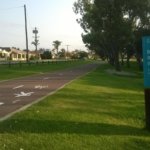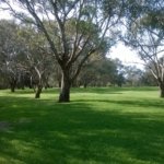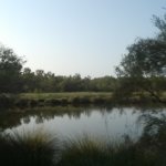 Délután meg elmentem sétálni, arra a bicikliutas részre, ahova a múltkor, csak most jobbra indultam el. A térképen a piros pöttynél lakunk, a lekerekített sarkú négyzetig mentem el a múltkor, addig a csücsökig, most meg a bekarikázott részt jártam be. Nagyon szép park van az elején, aztán bementem a “sűrűjébe”. 🙂 Kavicsos vagy homokos út vezetett, néhol csak egy csapásnyi, körülöttem nagyon szép virágok, mindenféle méretben és színben, fák, rajtuk ricsajozó madarak. Az egyik valami papagájféle volt – már megint. Láttam a múltkori rózsaszíneseket is, azok békésen csipegettek a fűben, ezek a lármázók meg nagyon színesek voltak, zöld a hátuk, kék-piros a szárnyuk, a fejük meg kék és zöld. De annyira gyorsak voltak, meg mindig a fény felé repültek, hogy nem nagyon tudtam őket megvizslatni. Jöttek a szokásos halálmadarak, meg voltak hosszú farkú fecskék, meg a jó ég tudja még hányféle madár.