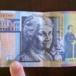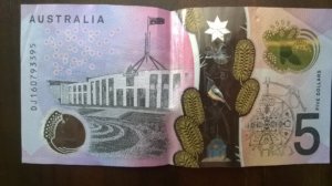 Na ez már papírpénz, illetve ez így nem is igaz, mert műanyagból készítik 1988 óta, ebben a formájában 1992 óta. Ez az a tipikus téphetetlen, gyűrhetetlen, mosható, sziperszuper cucc. Legkisebb értékű és méretű bankjegy, ami forgalomban van itt.