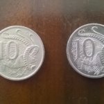 Hátlapján ugyanaz a két variáció fordul elő, mint az 5 centesnél, s ugyanúgy ’66 óta bocsájtják ki, s ’99-ben kapta az új dizájnját.