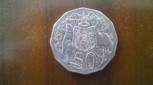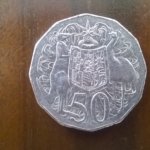 Előlapján az ausztrál címer van, egy kenguru és egy emu, ami közrefogja a pajzsot, rajta 6 tagállam jelképével, a háttérben pedig Ausztrália jelkép-növénye a golden wattle, aminek nem tudom mi a magyar neve (arany akác, talán…).