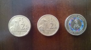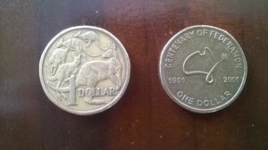 Előlapján 5 kenguru ugrál. Ehelyett azonban elég sokszor lehet találkozni más mintákkal is, mert gyakran adtak ki egy-egy nevezetesebb alkalomból “ünnepi” érmeket. Nekem az ausztrál államok szövetségének megalapításának 100. évfordulója alkalmából megdizájnolt egy dolláros jutott.