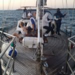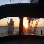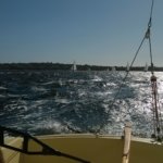 Mint kiderült, ez egy különleges verseny volt, mert összegyűlt az összes S80-as hajóosztályban egykor megfordult, versenyzett hajó és hajós, korábbi bajnokok, stb, úgyhogy ez egy Legend race volt. (Írtak is egy cikket róla.) Ezúttal a 24 hajóból sikerült a 6. helyen beérnünk, ami javulás a múltkorihoz képest. És izgalmasabb is volt ez, jóval erősebb volt a szél, így munkásabb is, több volt a hajó, de a rajtvonal ugyanakkora… S most nem a grószt kezeltem, hanem a másik Tony-val a fokért feleltünk. Volt is pattogás, mert kiültettek minket teljesen a hajó szélére, középre, úgyhogy amikor szóltak, hogy takkváltás, mi kúsztunk-másztuk-ugrottunk, ahogy tudtunk, hogy odaérjünk a vitorlához, néha segítette a mozgást egy-egy hullám, úgyhogy a nap végére úgy néztem ki, mint egy közepesen munkás kalózos verseny után… Egy-két (most már sötétlilás-barnás) foltom még most is van mondjuk. 😀 S mivel súlyként is szerepeltünk, néha ott tartottunk, hogy két lábban kifele ültünk, kapaszkodtunk, ahol tudtunk, vantniba, deckbe. De gyorsan be is kellett húzni tagjainkat, mert nem egy bójánál besűrűsödött a mezőny, és néha állítom, 1-2 centin múlt a koccanás. Jól el is fáradtam a nap végére, izomlázam is lett a combomban, mert néha már onnan húztam a kötelek, hogy kellően meg tudjam feszíteni a vitorlát.