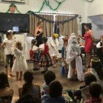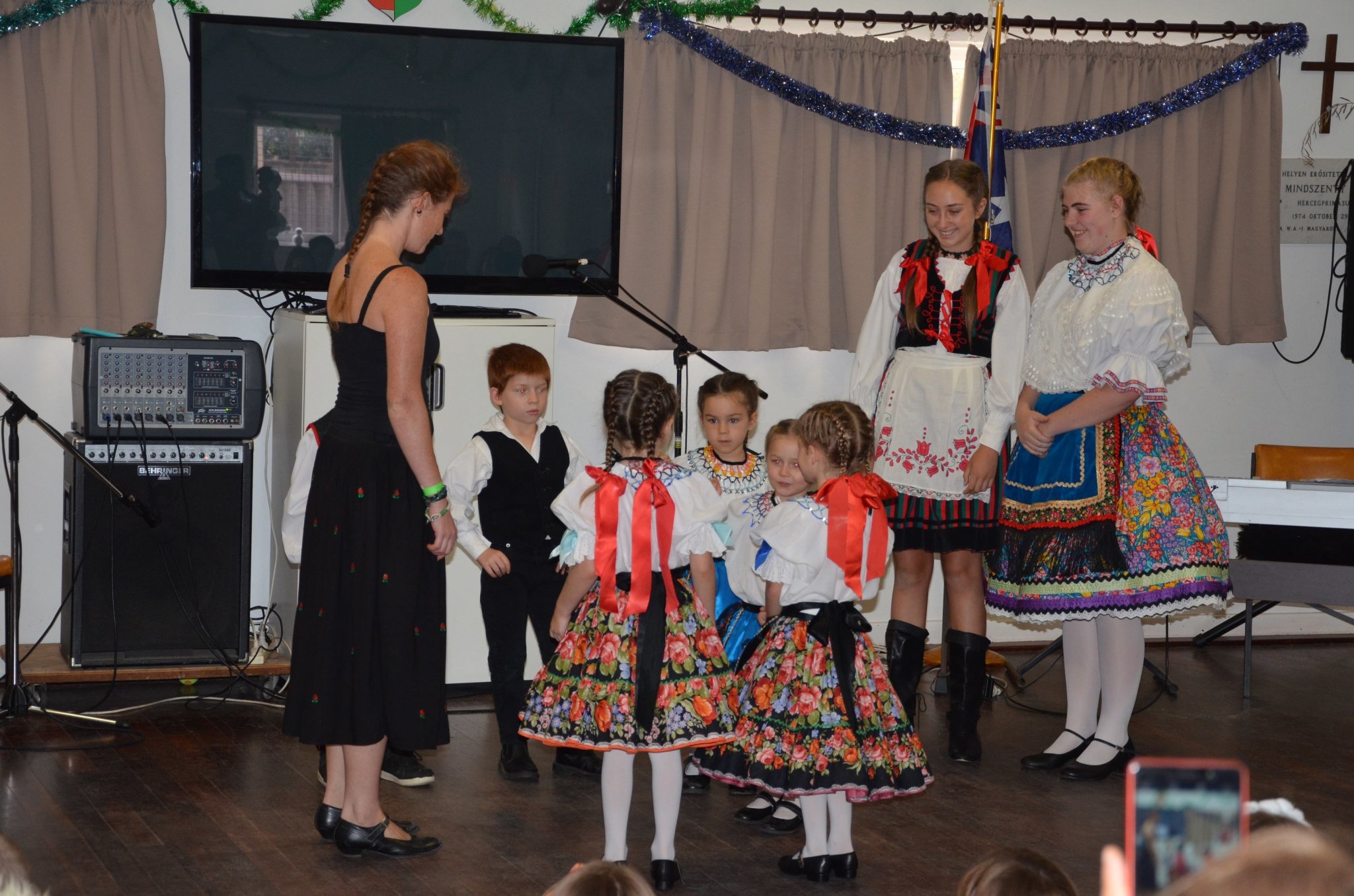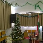 Vasárnap pedig eljött a rettegett várva várt nap, a Mikulás ünnepéllyel. Kicsit úgy éreztem, hogy úgy vagyok vele, mint szamár a füllel, de végül szerintem a lehető legjobban sült el. Mi odamentünk már fél 1-re, bepakoltuk a termet, megcsináltuk a nézőteret, bevittük a szükséges eszközöket… Kinyomtattattam a műsortervet, ezt nagyjából közöltem a fellépőkkel, aztán elkezdtek szállingózni a gyerekek meg a szülők, mert még egyet szerettem volna mondjuk mindegyik csoportommal próbálni, de csak a betlehemest tudtuk lenyomni, kellett is, meg a táncosaim öltöztek úgyis, meg mivel az nagyrészt improvizáció volt, nagyon nem is izgultam miattuk.