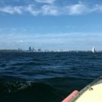 Háromnegyed 4-kor meg jött értem Levi, mert mentünk hajókááázniii! Ügyesen megtaláltuk a mólót, összeverődött egy kis csapat, s elindultunk. Előtte persze megvolt a biztonsági előadás a mentőmellény használatáról meg a szokásos dolgok. Szépen csorogtunk kifele, szigorúan betartva a 6 csomó alatti sebességet, amit mérnek is bizonyos helyeken! És egyszercsak felcsillant jobbra a tenger – majd mi elkanyarodtunk balra. -.- Oké, gondoltam van egy másik kijárata is az öbölnek. Pöfögünk gyökkettővel, közben nézzük a hatalmas yachtokat, aztán megfordulunk, visszamegyünk ugyanazon az úton… Szóval ez volt az időhúzás része. Végre tényleg kimentünk ezután a nyílt vízre. Hatalmas hullámok, vitorla fel, megdől, elindul, hullámok felcsapnak. 😀 Iszonyatosan élveztem. Én készültem, vittem hosszú cuccokat, fel is vettem őket, vizes is lett mint, de a többi hölgyike eléggé vékonyan volt öltözve. Sikítottak is az első felcsapó hullámnál… 😀 Meg gyorsan hátrahúzódtak a tatra 😀 Mi meg ott élvezkedtünk elöl Levivel. Persze én voltam az első, aki kiment az orrba. Egyrészt oda nem csaptak fel a hullámok, másrészt nehogymár ne menjek ki 😀 Aztán szépen hátrasomfordáltam a kormányhoz… Mint kiderült, Levi ismerte a kormányost, úgyhogy ott dumáltak, én meg bátorkodtam rákérdezni, hogy esetleg netalán tán kipróbálhatnám-e véletlenül a kormányzást… Nem ellenkedtek. Megmondta, hogy merre tartsak, aztán beszélgettek tovább… 😀 Úgyhogy a nyílt vízről szépen bevittem a hajót a Swan torkolatába, ott megfordultam, mert már eléggé alacsonyan volt a nap, s gyanús volt, hogy lekéssük a naplementét, vagy a konténerrakodó daruk sziluettjével együtt kell végignéznünk, ahogy eltűnik a horizonton. Úgyhogy belenyúlt a kormányos egy kicsit – előrébb tolta a gázkart… Na itt kicsit elszontyolodtam, hogy nem is tisztán vitorlával mentünk idáig… 🙁 Meg nem értettem, hogy miért kell bemenni ebbe az ipari részbe, de kifele menet láttunk három delfint, úgyhogy kicsit helyrebillent a lelkivilágom. Közben néha továbbléptette a számokat a telefonjáról, ami szólt a hangszóróban – bár határozottan hangot adtam véleményemnek, amikor elnyomta a Megadeth-et… 😀