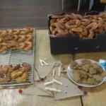Ott voltunk estig a magyar házban, délután még kigolyóztam 30 g-os adagokat a kb 6 kilónyi megmaradt diós töltelékből, lereszeltem 8 citrom héját, meg segítettem hajtogatni mindezek végeztével a kis kifliket az segítségként megjelent asszonyoknak. De igyekeztem valami más munkát találni, mert egyrészt -szerintem- szar volt a tészta, és szakadt, és/vagy túl vékonyra nyújtották és/vagy túl sok volt a töltelék bele, de szakadt szét az egész, némelyik már a tekerésnél, a többség meg ha ekkor még nem is, akkor a sütésnél biztosan… Na de mindegy, én nem értek hozzá, 60+ év tapasztalattal meg nem akarok vitatkozni, meg ha ezt itt így szokás… Biztos a robbantott kifliket az helyiek…