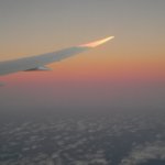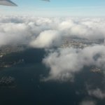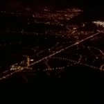 Ez a röpke két óra tényleg nagyon hamar elment már. Ahogy felszálltuk és egyenesbe jöttük, indultak a hülgyikék a zsúrkocsival, persze az elején kezdték, és úgy haladtak visszafelé, úgyhogy mire hozzám értek már majdnem egy óra eltelt. Addigra ki is néztem, hogy 4 euróért kérek egy muffint meg egy forró csokit – mielőtt kihűlnék hazáig. Végre megkapom, kibontom, színes (zöld) és szőrös. Hát, ez nem pont az volt, amire vágytam, úgyhogy felállítottam a szélén ülő srácot, átmásztam a köztünk lévő cuccainkon meg rajta, és mutattam a hölgyikének, hogy ez nem biztos, hogy finom, inkább kérnék egy másikat. Pár másodperces konzílium után kaptam is egyet. Elnyammogtam – rájöttem, hogy a szemem jobban kívánta, megittam a “forró csokit”, aztán jeleztek is, hogy kapcsoljuk be magunkat, meg elkezdjük a leszállást. Közben, amikor csak tudtam, előre hajoltam, próbáltam az előttem lévő ülés fölött kilátni – és nem a benne ülő srác nyakába lihegni túl feltűnően. De hát amikor ilyen szép városok felett repülünk el, csak ki kell néznem, pláne amikor kicsit felszakadozik a felhőzet!