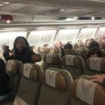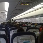 Közben én meg már örömködtem a helyemnek – ezt az egyet nem tudtam indulás előtt, otthonról elintézni, úgyhogy aznap Perth-ben csekkoltattam be magam a nővel, s 25A széket kaptam. Az A mindig jó, mert az tuti a széle, tehát ablak. Szállok fel erre a kis zsebkendőnyi gépre – majd megfagyok, mert nem engedték, hogy ellopjam az Abu Dhabi-i gépről a takarót, itt meg a busz meg a gép bejárata között magunknak kellett fellépcsőzni, nézem a székeket, ahogy haladok a sorok között, betippeltem, hogy valahol hátul lesz az enyém, mert már a 10-esnél voltam, s még csak a gép felénél. Haladok hátrébb, már huszonok vannak, még hátrébb, amikor meglátom az utolsó (fél) sort, az egyetlen helyet, ahol nincs ablak… Na én megkaptam itt a belső helyet… Hurrá. Erről annyit, hogy hazáig nézelődök. A kézimet felraktam valahova a 20. sor fölé, mert mindkét oldalon tele volt a mi részünk mindenféle más, idomtalan méretű táskákkal, amik elfoglalták az ilyen kis gurulós etalonok helyét…