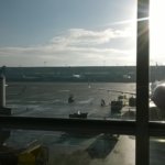 Ha jól emlékszem, reggel fél 8 körül érkeztünk meg Brüsszelbe, akkor még sötét volt ott is, s elég hideg. Ekkor már világomat alig tudtam, fáztam, fáradt voltam, úgyhogy a terminálba bejutva kerestem egy viszonylag nyugis helyet, találtam is egy nagy, puha felületet, ez ilyen hullámvonalban kacskaringózó szivacs kanapé-szerűség volt, hosszan elnyúlva, vagy 15 ember elfért rajta. Én kinéztem magamnak egy szimpatikus üres kanyart benne, lecuccoltam, s eldőltem, mint a rohadt nád. Sikerült aludnom vízszintesen kb másfél órát, s ez annyira jól esett. Annyi szépséghibája volt a dolognak, hogy annyira fáradt voltam már, hogy nem volt erőm kicipzározni a kézi bőröndömet, hogy kivegyem a Marikától kapott kabátomat, és kb meg voltam fagyva, amikor felébredtem. Még negyed órát ültem a sarkamon, s meredtem szimplán előre, mire össze tudtam fejben kaparni magam, hogy csináljak valamit. S ekkor még mindig kb 3 óra volt vissza, mire kiírták, hogy hányas kaputól fog indulni a gép… Úgyhogy felöltöztem – eső után köpönyeg -, s betámadtam a Starbucks-ot egy jó forrócsokiért. Meg egy szokásos sajtos-sonkás croissant-ért. Elücsörögtem még itt jó fél órát kaja után, kellően fel is melegedtem, de még így is bőven volt időm… Úgyhogy kerestem egy csöndes, napos helyet, és kiültem napozni, mint a gyíkok. Zenét hallgattam, nézelődtem. Aztán meguntam, meg már féltem, hogy kinéznek onnan, fogtam a sátorfámat, arrébb mentem egy 50 méterrel arrébb lévő, szintén üres várórészbe, megint a napra. Itt voltak ilyen napozóágy kialakítású fekvő helyek, úgyhogy gyorsan egyet kitulajdonítottam magamnak. Itt is elheverésztem vagy egy órát, aztán arrébb mentem egy harmadik helyre… 😀 Aztán lassan idő volt, már kiírták, hogy hányas kaputól fog indulni a gép, akkor már teljesen legálisan ott várakoztam, kezdett gyűlni a tömeg is, végre történt valami… Hamar meg is nyitották a boardingot, kezdődött a sorban állás. Egy faszi megszólít hátulról, hogy éljenek a basszusgitárosok. Mondom ja, szerintem is, csak én nem vagyok az. Hát akkor mi ez itt a hátamon? Mondom citera. Jééé, hát az mi…? Elkezdtünk beszélgetni, kiderült, hogy a faszikám felmenői magyarok (ö maga német), s a nagyapja szekszárdi származású…